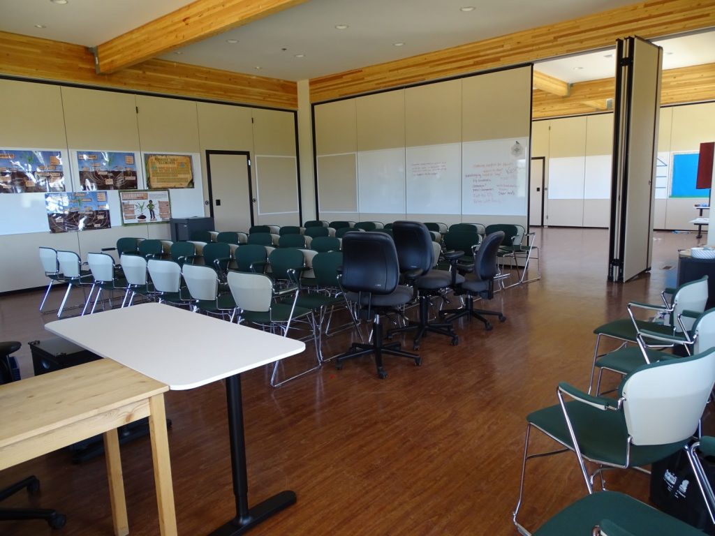 The Barton School House uses the flexibility of three 50 STC Moderco Excel 742 Paired Panel partitions to quickly create 4 classrooms, a large community meeting rooms or other configurations whenever the needs arise. The marker boards, tack boards and pass doors show some of the many options available for your next project. We love the wood beams and bright learning environment created. Take a look at the photo gallery to see the transformation from classroom to wide open, multi-purpose room.