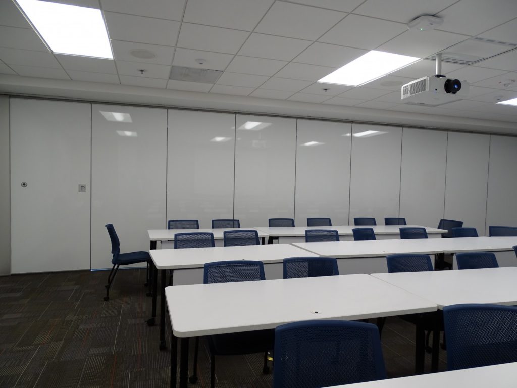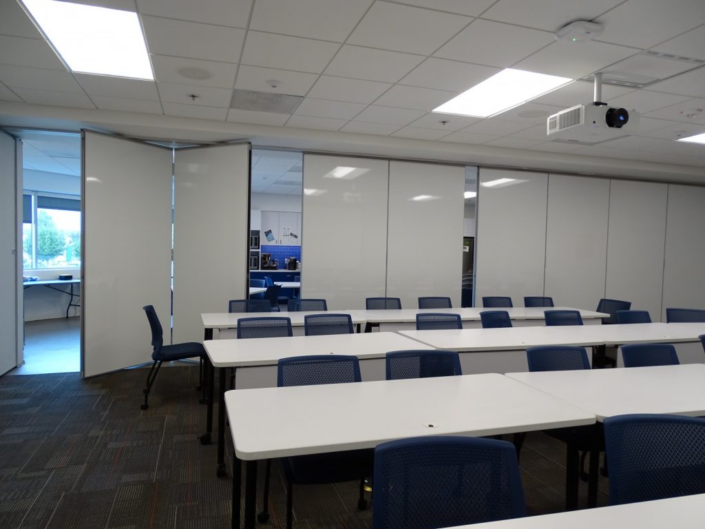 Of course they turned to Moderco Signature 842 operable partitions for their training rooms. The training rooms on this project open up onto the break room, so it’s easy to expand for large meetings or social events. There’s also flexibility with the finishes chosen by the architect HOK. The training side are great looking full height markerboards that can also be used with magnets to display. The break room side has warm fabric that also is steel backed to display or decorate for holidays. Privacy is assured with the 52 STC performance and setup is quick and easy. Esplanade Builders brought this project together well as GC. Bum ba-dum bum bum bum bum