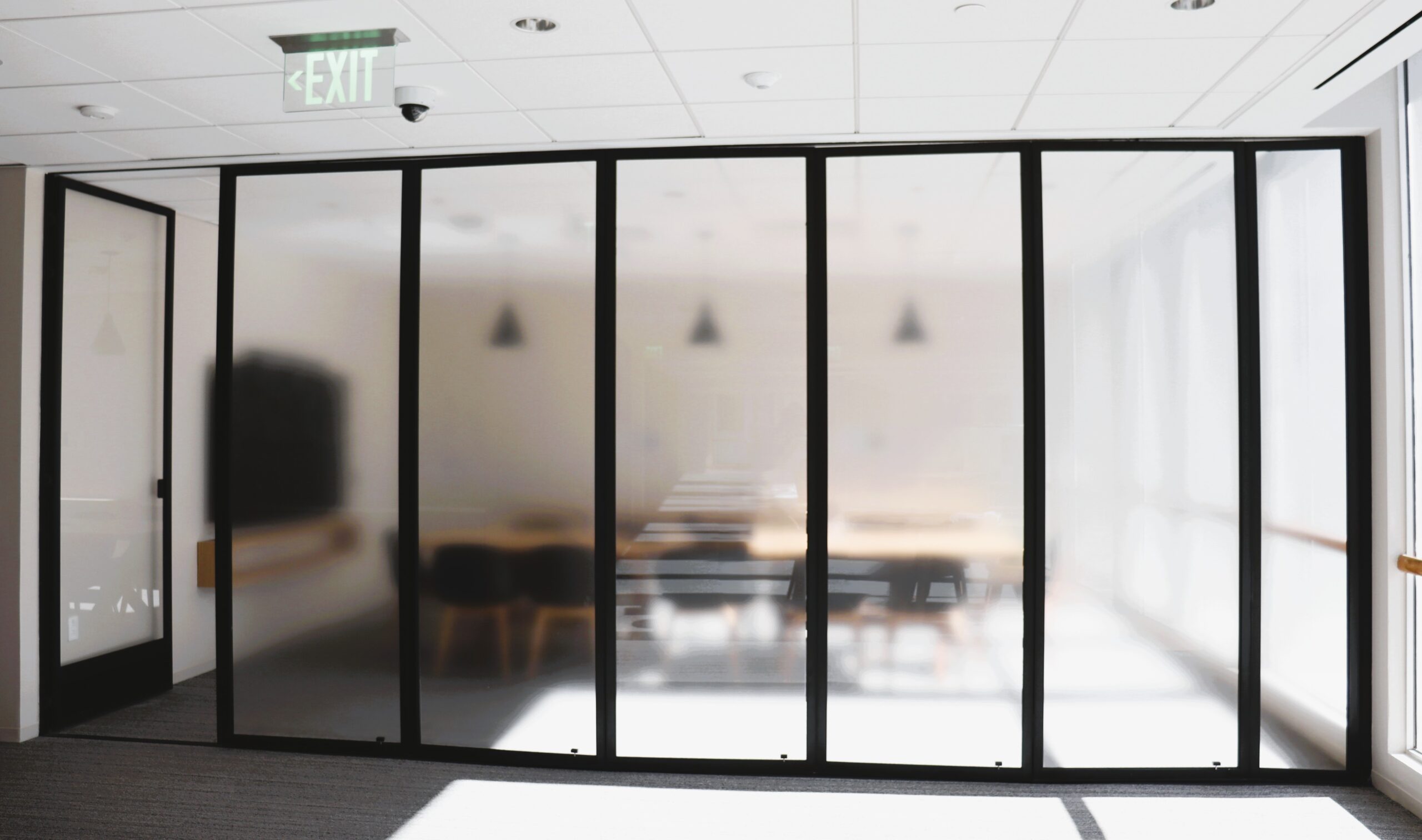 When it's time to bring the entire team together, the partition glides open effortlessly to create one large, open area in seconds.