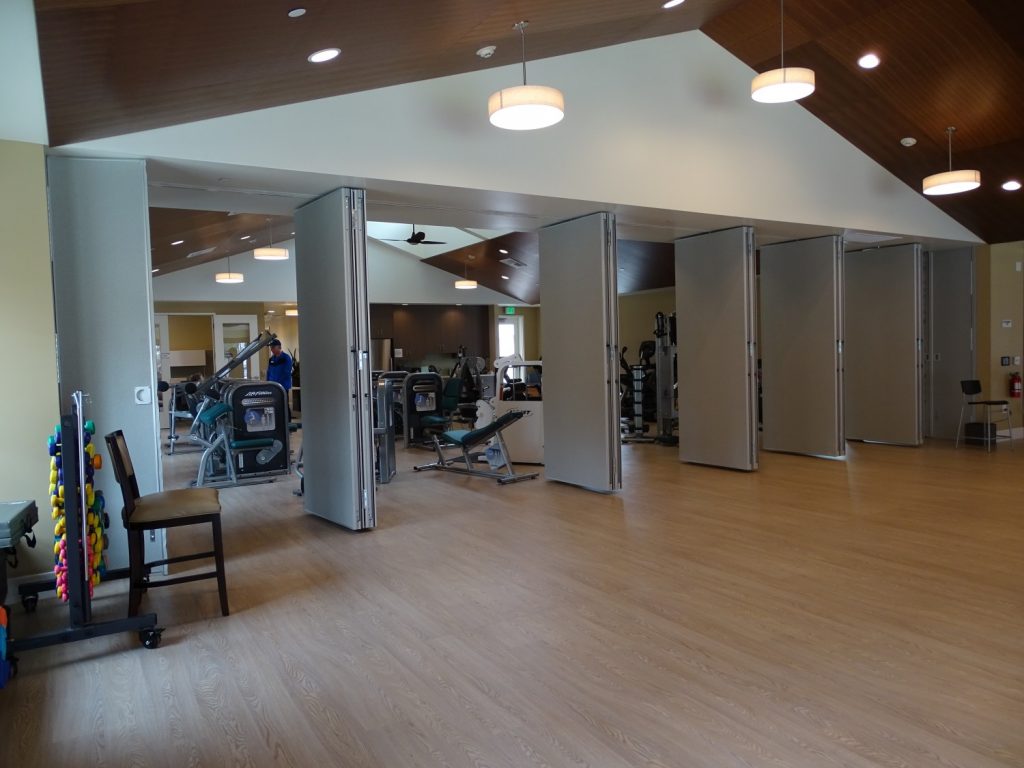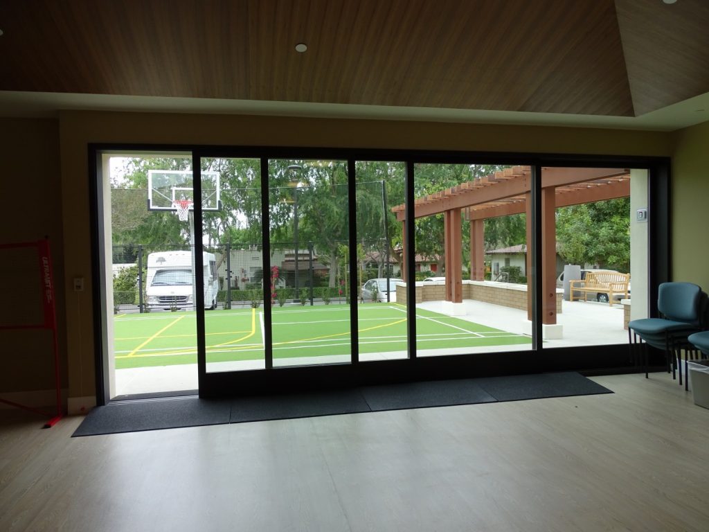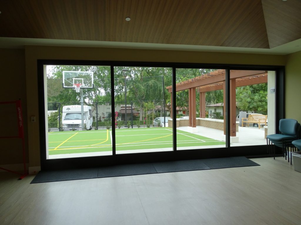 Walking this facility I suddenly wished I could retire, wow! This facility is in the beautiful Huntington Library neighborhood and the amenities of this senior living facility and property make it fit right in. L2 Specialties brought a couple of our manufacturers into this project to provide the ultimate flexible space – inside and out. Shelter LLP did a wonderful job designing the new wellness center. Inside if you are hitting the exercise equipment on one side of our Moderco 842 operable partition you won’t disturb the yoga class on the other side. Also if you are up for a game of basketball just use the LaCantina Multislide door to get right to it and bring in the beautiful SoCal weather. CDG builders did a great job as GC delivering this project to the highest standards!