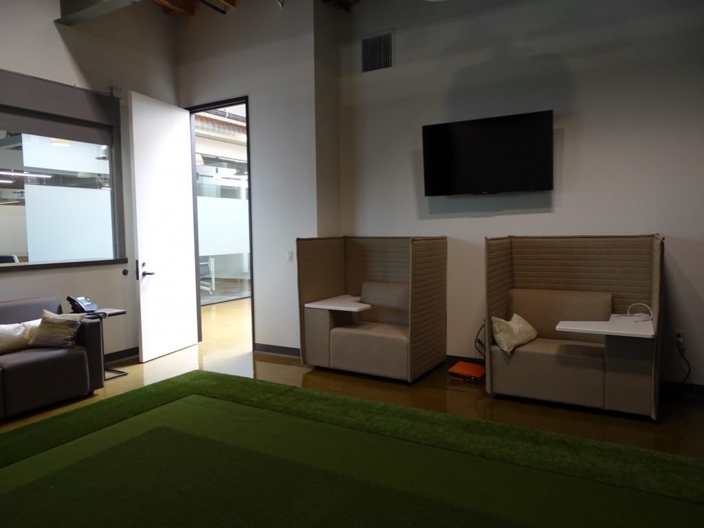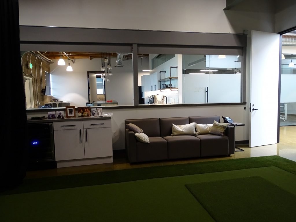 This project showcases another way L2 Specialties can help you with creative space – vertically! PT Gaming, LLC, is one of the largest fully licensed Third Party Providers of Proposition Player Services in California and they know how to have fun. When they were creating their new SoCal office they turned to Kamus & Keller and L2 Specialties to create their dreams. Behind the beautiful wood doors is a great electronic indoor golf course, you wouldn’t know until you hit the switches to open the area up for your next round on Augusta(without the humidity!) or somewhere exotic…