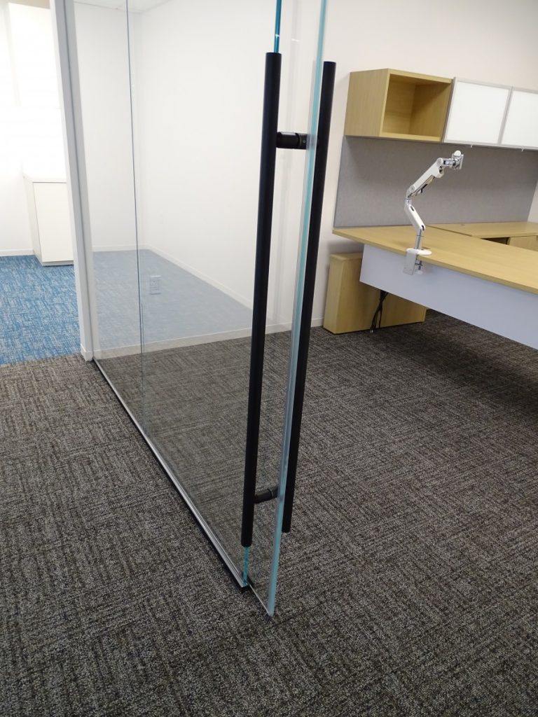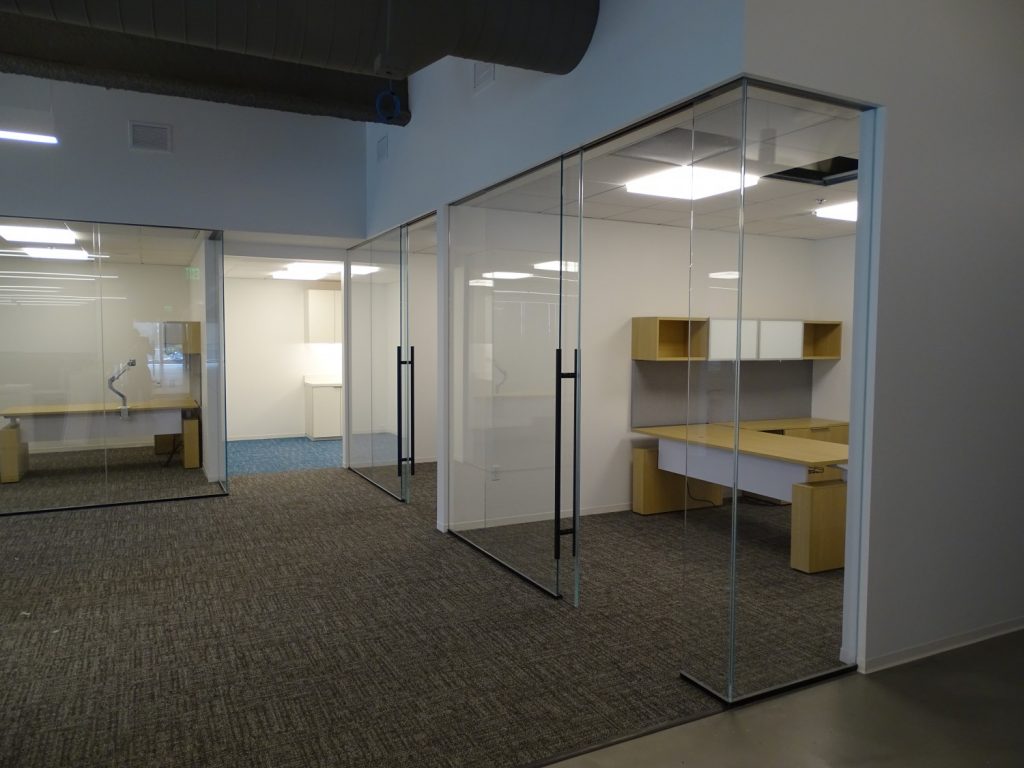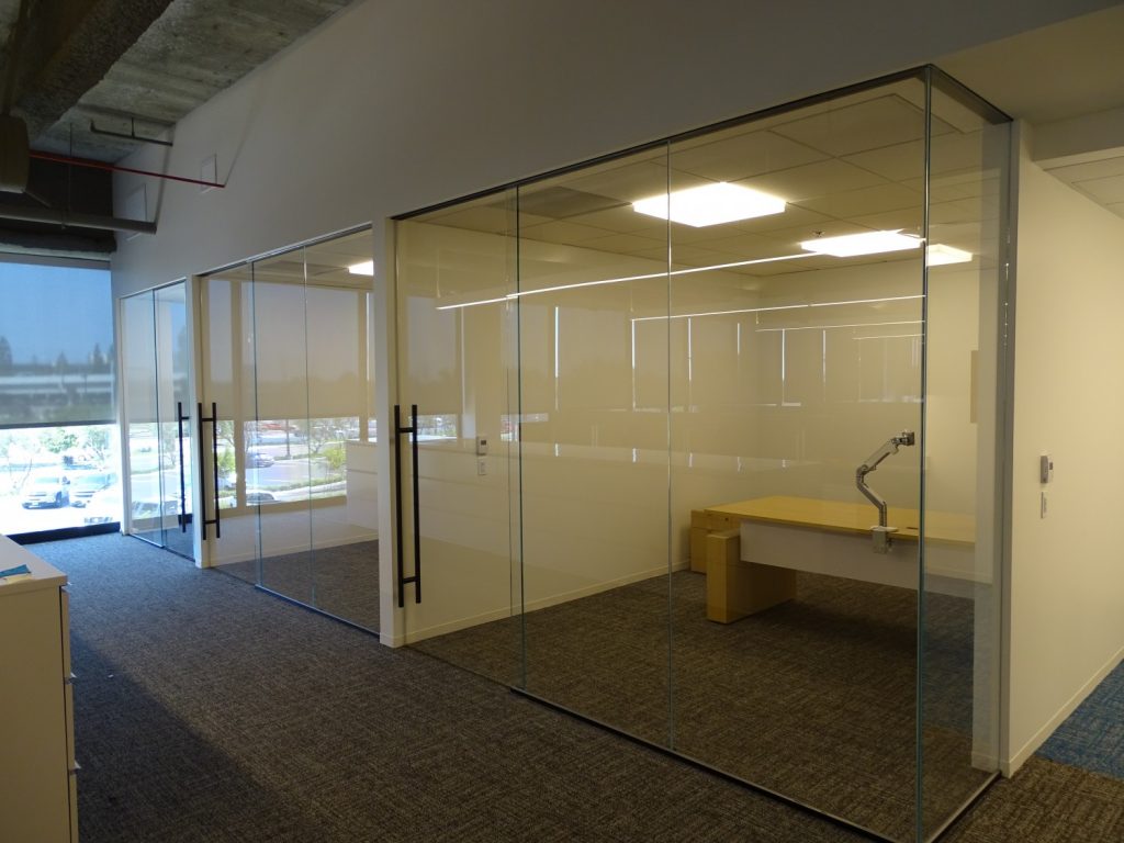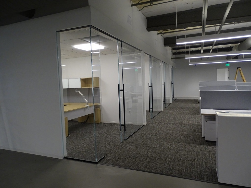L2 Specialties worked with Moshiri Associates as architect and Howard Building Corporation General Contractor on these new offices in El Segundo. Utilizing frameless sliding glass office fronts was the best possible choice as the natural beauty of glass, soft close and opening features are beautiful and effortless. The daylight will be streaming into this workplace and the open office feel is amazing. Let’s work on creating the same ambiance for your next office soon.