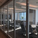 Glass partitions are a great way to divide your space while allowing them to feel free and open! SAA Architects used this frameless folding glass system to separate a conference space without losing benefit of the natural light or making the space feel smaller. The pivot panel with ‘D’ handle allows convenient passage without needing to take down the system.